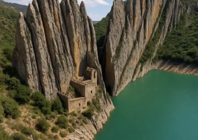 En Lanuza, despoblada en 1976 tras la construcción del embalse del río Gállego, se recuperaron, a partir de la década de los 90, algunas de las propiedades que no estaban sumergidas. En un paseo por sus calles se puede visitar la iglesia de El Salvador, construida en el siglo XIX sobre un templo románico.