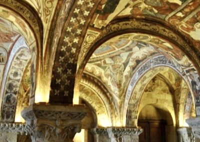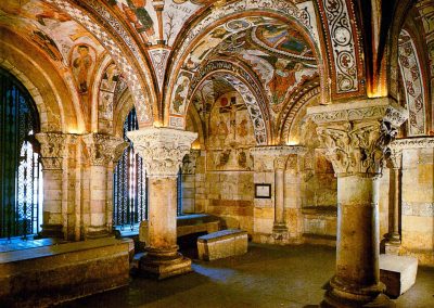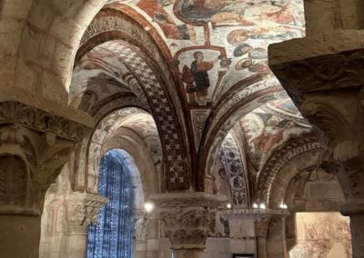 Este templo destaca por las magníficas Portadas del Cordero y del Perdón, aunque su gran tesoro es el Panteón Real, una cripta que contiene los sarcófagos y huesos de varios Reyes de León, además de unos fantásticos frescos del siglo XII que le han dado el sobrenombre de la Capilla Sixtina del románico.