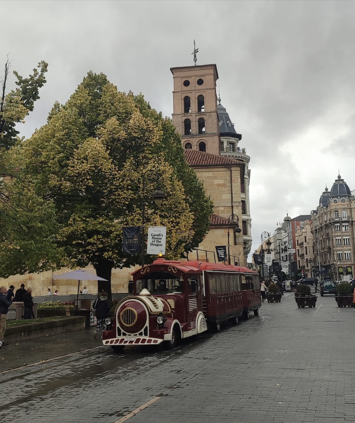 Desde la plaza hay una buena panorámica de la parte trasera de la Iglesia de San Marcelo, del Palacio de los Guzmanes y de la Casa Botines (obra de Gaudí).