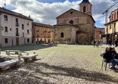 La Plaza de Santa María del Camino, conocida popularmente como Plaza del Grano, en la que antiguamente se montaba un mercado para la venta de grano y otros productos del campo, está rodeada de atractivas casas con soportales de la época medieval y de la Iglesia de Santa María del Camino, además de tener una fuente con una columna en la que se puede ver la figura de dos niños que representan la confluencia de los ríos Bernesga y Torío.
