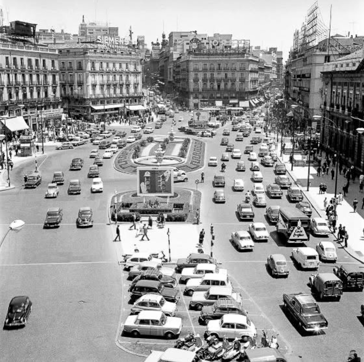 En su planta semicircular confluyen varias de las calles históricas y más transitadas de la ciudad, como Mayor, Arenal, Alcalá y Preciados, y concentra varios de los elementos más representativos de la capital de España.